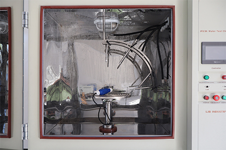 물은 Ipx9k 테스트 챔버에서 각각 30 초 동안 0 °, 30 °, 60 ° 및 90 ° 의 4 각도에서 분무됩니다. 물 분무 시험은 고압 (8000-10000Kpa), 고온 (88 ° C) 및 물의 흐름 속도 14-16L/min에서 수행되어 제품의 물 침투 저항을 테스트합니다.