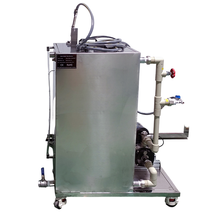 워터 스플래시 테스터는 실제 사용 환경에서 물 스플래시 영향을 시뮬레이션하기 위해 GOSTuckar IECcutter 60335 2 시리즈 표준의 Figurecurus 101 따라 설계되었습니다. 그릇 모양의 스플래시 장치가 시험 표본 주위를 회전하여 여러 각도에서 기기로 자연수가 튀는 것을 생성합니다.